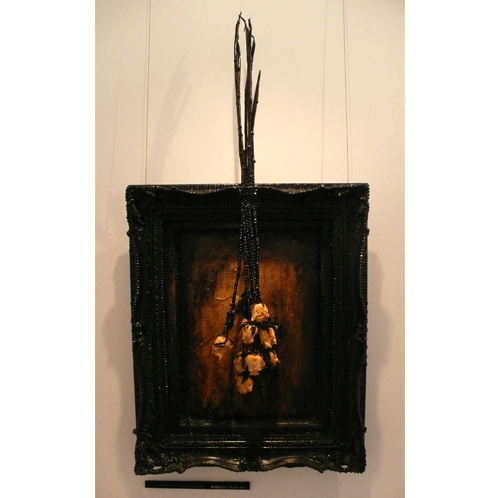 薔薇の花束を人生に見立て、額は人生を彩る華やかな時の中、舞台を表し、そこに様々な形の薔薇が花開く。様々な人々だったり様々な人生経路を表した薔薇と額をスワロフスキークリスタル4000個で光り輝く人生の舞台を飾り立てます。枯れた薔薇と朽ちた貝殻やガラスという虚ろな素材を使い、死をイメージさせる事によって生を実感して頂く試みの作品です。