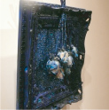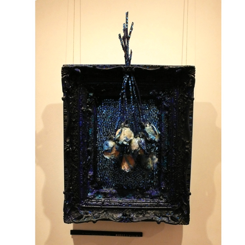 枯れた薔薇と朽ちた貝殻やガラスという虚ろな素材を使い、死をイメージさせる事によって生を実感して頂く試みの作品です。
