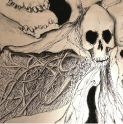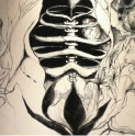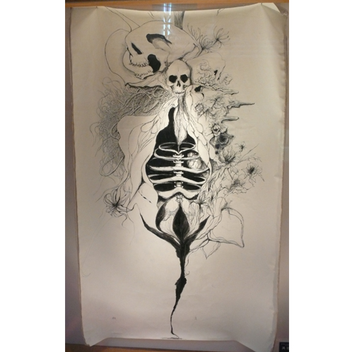 生命の循環をコンセプトに生命の神秘、極楽浄土を描いてます。個展『生殖物』のトップに飾られた作品です。