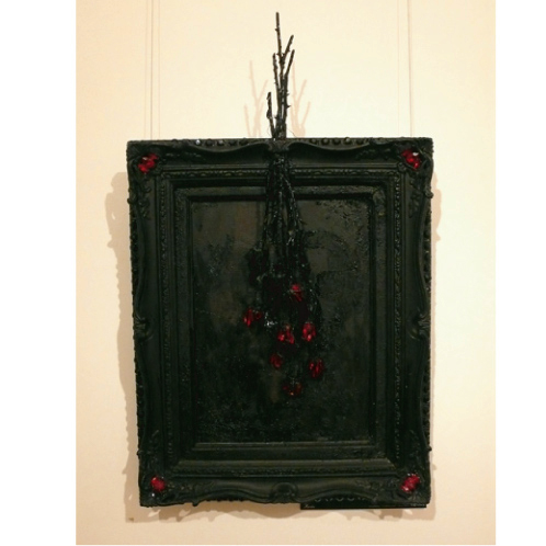 薔薇の花束を人生に見立て、額は人生を彩る華やかな時の中、舞台を表し、そこに様々な形の薔薇が花開く。様々な人々だったり様々な人生経路を表した薔薇と額をスワロフスキークリスタル4000個で光り輝く人生の舞台を飾り立てます。枯れた薔薇と朽ちた貝殻やガラスという虚ろな素材を使い、死をイメージさせる事によって生を実感して頂く試みの作品です。