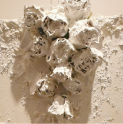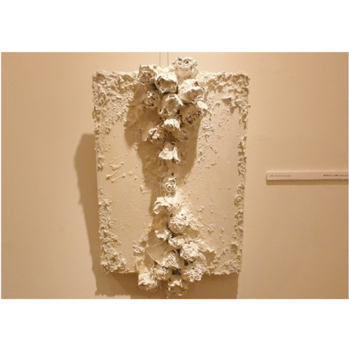 薔薇の花束を人生に見立て、額は人生を彩る華やかな時の中、舞台を表し、そこに様々な形の薔薇が花開く。様々な人々だったり様々な人生経路を表した薔薇と額で光り輝く人生の舞台を飾り立てます。枯れた薔薇と朽ちた貝殻紙など虚ろな素材を使い、死をイメージさせる事によって生を実感して頂く試みの作品です。